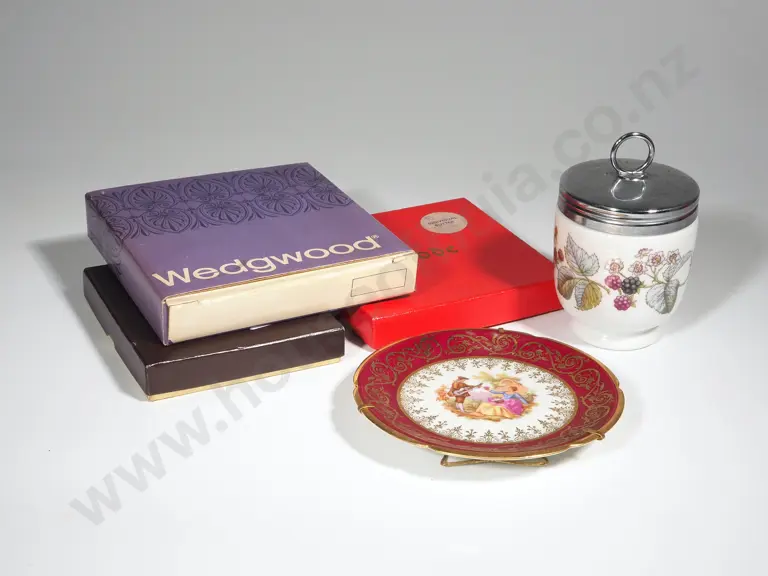 LImoges Small Plate, Royal Worcester Egg Coddler, Wedgwood Dish & A Miniature