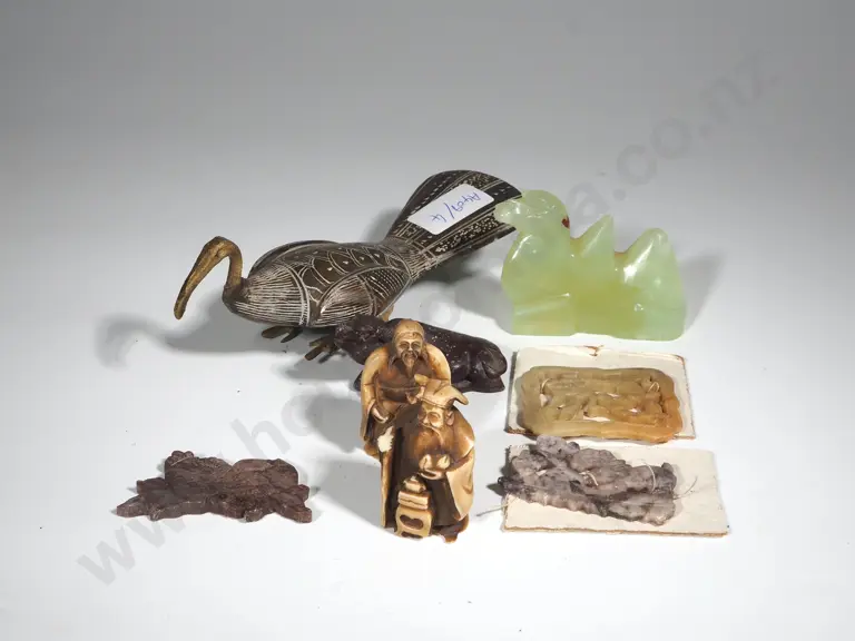 A Collection of Jade & Soapstone Figures including Two Imitation Netsuke Estimate: $60 - $80