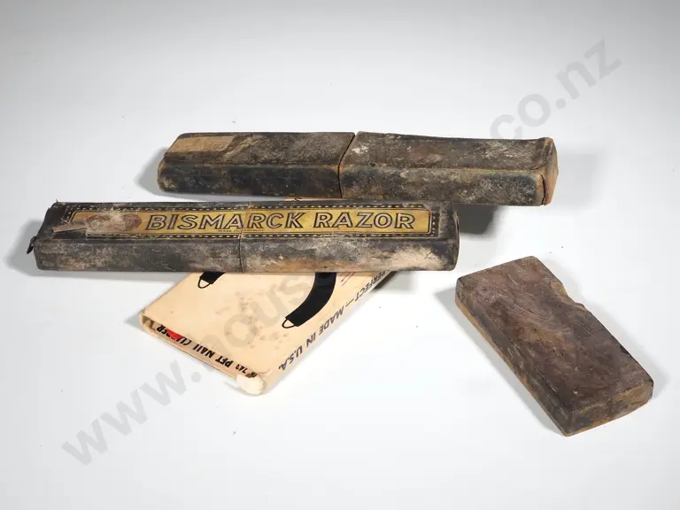 Two Vintage Cut Throat Razors in Boxes, Whet stone & Millers Forge Manicure Set Estimate: $50 - $70
