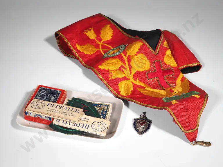 Copenhagen Pin Dish with Apple Blossom Decoration, Two Small Vintage Boxes,Embroidered Religious Collar