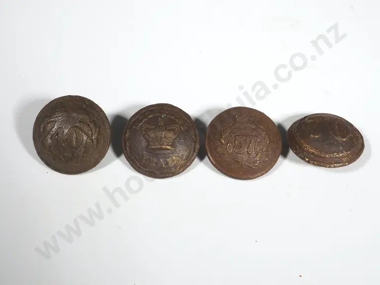 Four New Zealand Wars Ground Dug Military Buttons - Military Train / 40th / 57th / 70th