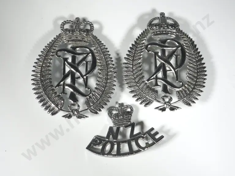 New Zealand Police Two Helmet Plates & Skeleton Badge