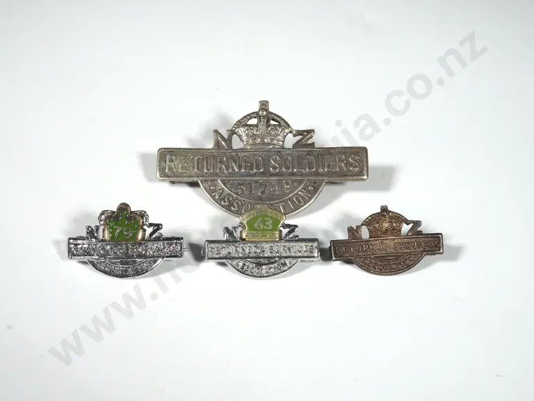 WW1 New Zealand Large RSA Badge to 51749 Duncan McIntosh & 3 Small RSA Badges