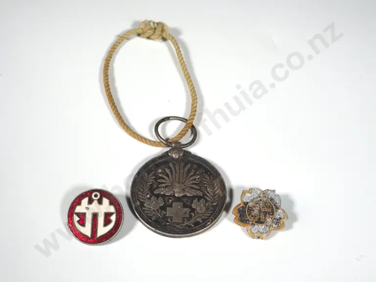WW2 Silver Japanese Red Cross Medal & Two Pins