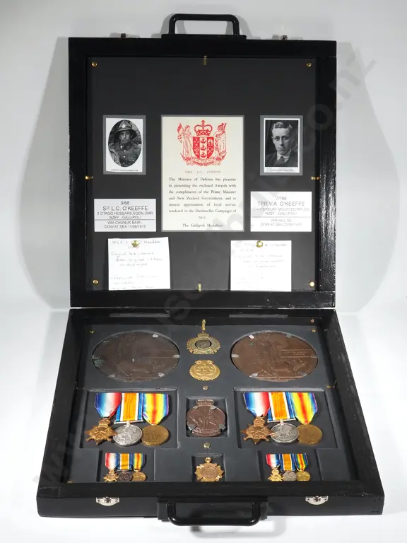 Exceptional WW1 NZ Gallipoli Campaign Group to Two Brothers Both Died August 1915 - Trios & Plaques & Token of Honour Estimate: $5,000 - $7,000