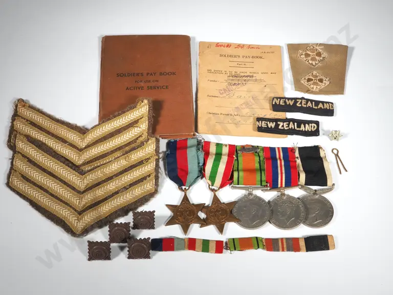WW2 New Zealand's Medal Group - Paybooks - Ribbon Bars - Rank Patches