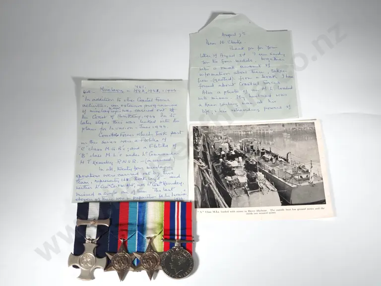 Scarce English DSC & Bar to Lt Commander Harold Kemsley RNVR Minelayer Estimate: $4,000 - $6,000
