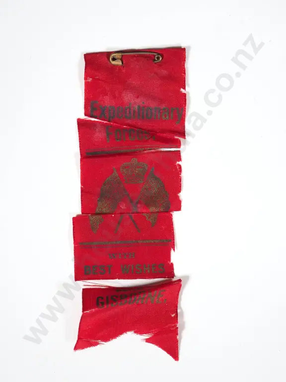 WW1 New Zealand Gisborne Silk Farewell to Troops Ribbon A/F Estimate: $40 - $80