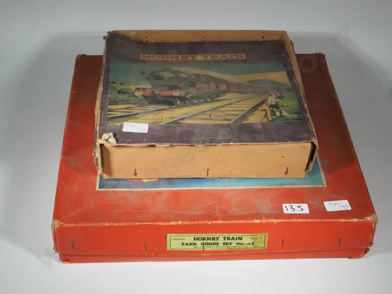 Meccano Hornby Train Tanks Goods Set No 45 - Empty Box & Hornby Passenger Train MO Passenger Set Empty Box Estimate: $20 - $40
