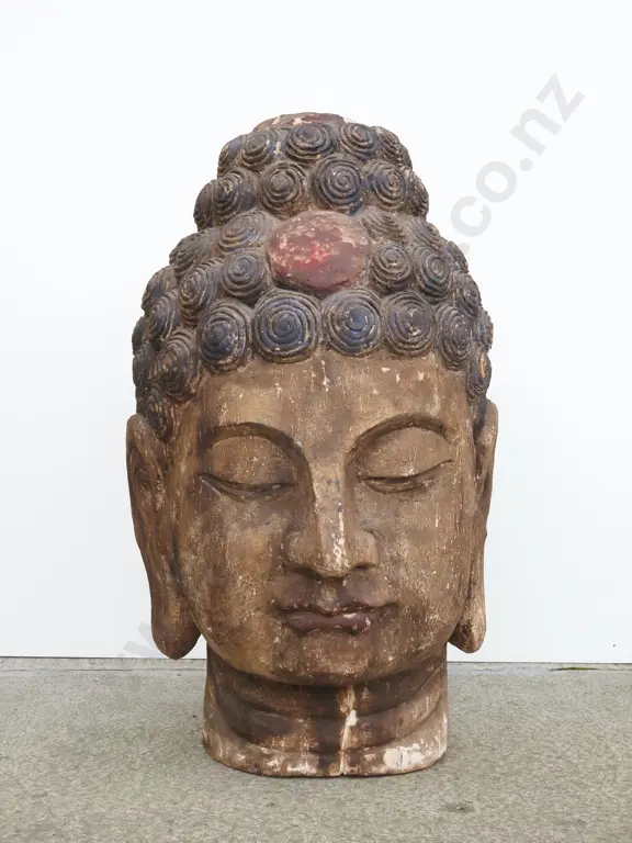 Very Large Vintage Wooden & Plaster Buddha Head With Snail Hair Estimate: $500 - $1,000