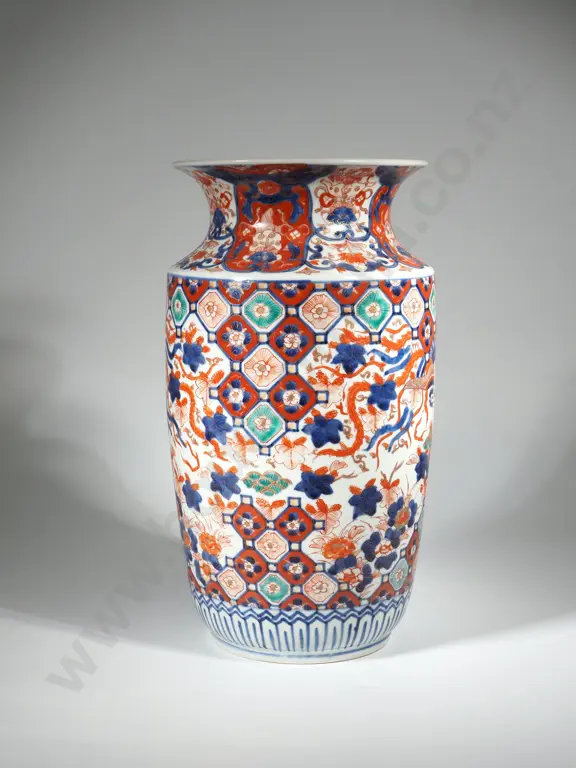 Japanese Imari Vase In Red, Green & Blue On a White Ground. Meiji 19th Century Estimate: $200 - $300