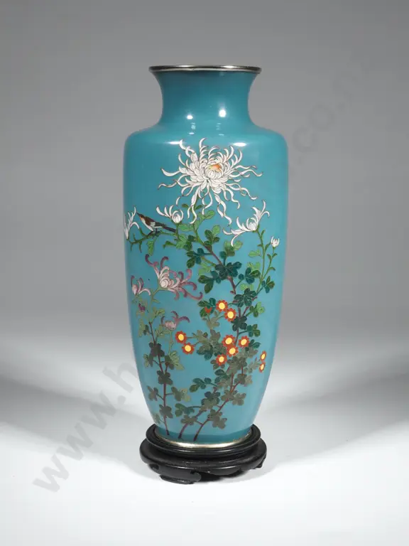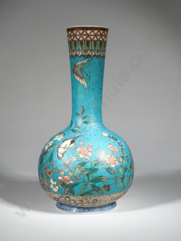 Japanese Totai Shippo Cloisonne Porcelain Vase w Birds & Flowers Estimate: $150 - $300
