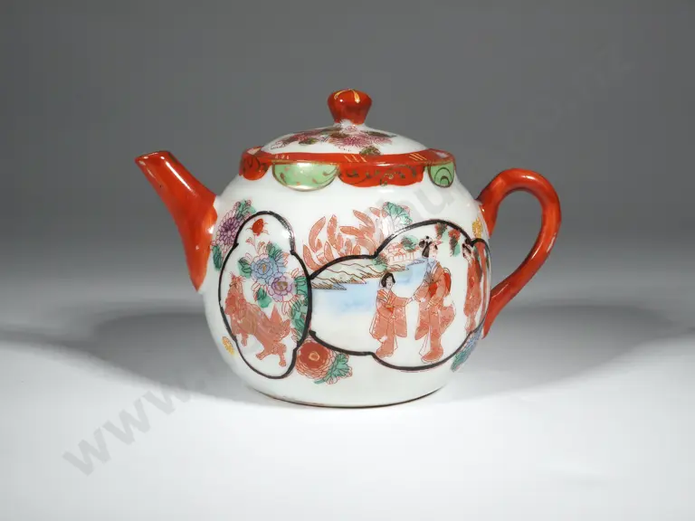 Kutani Geisha Girl Handpainted Porcelain Miniature Teapot. Painted w Scenes of Geisha Girls Hgt 110 x W 140mm Estimate: $40 - $80