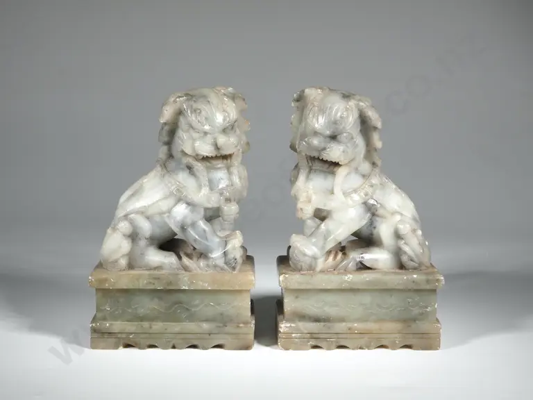 Stone Foo Dog pair Figurines 6" Grey Soapstone Chinese Guardian ShiShi Lion Vintage Bookend Fu Dog Estimate: $100 - $150
