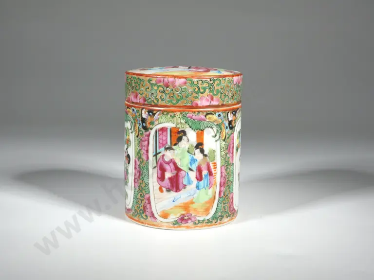 19th Century Chinese Famille Rose Lidded Cannister.Hgt 100mm x Dia. 75mm