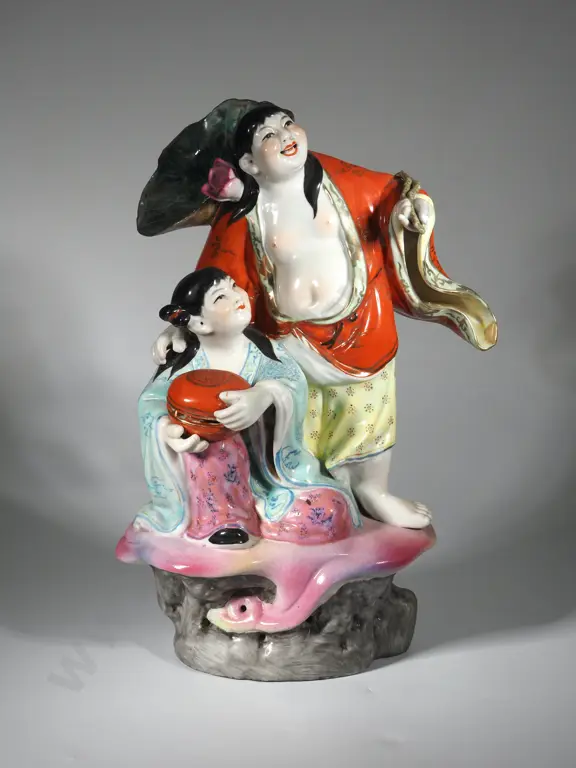 Large Porcelain Figure Of The Hehe Erxian Twins . Hgt 350 x Width 250mm Estimate: $200 - $300