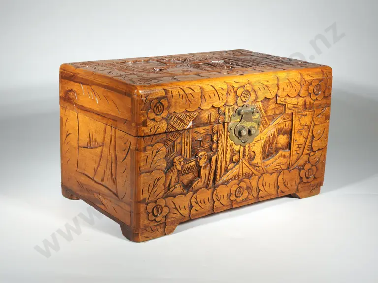 Carved Wooden Box of Costume Jewellery Estimate: $50 - $100