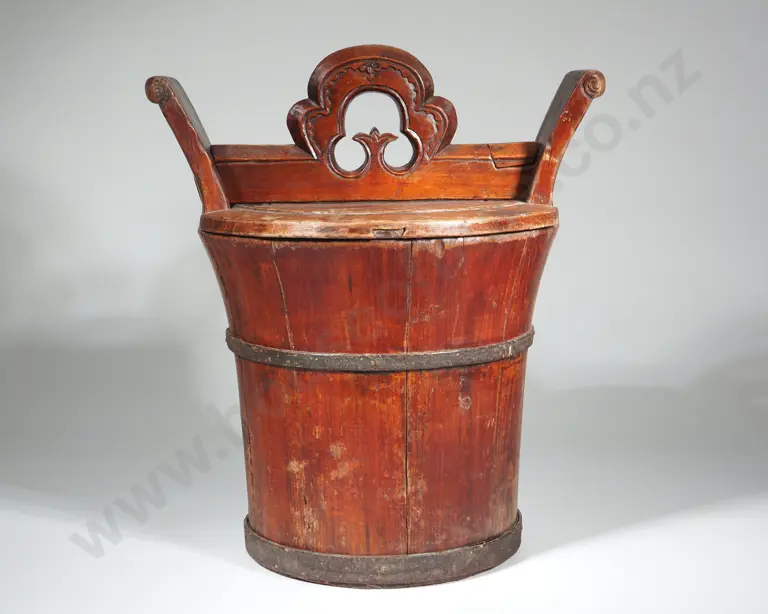 Antique Chinese Carved Wooden Rice Or Tea Box Bucket Estimate: $100 - $200