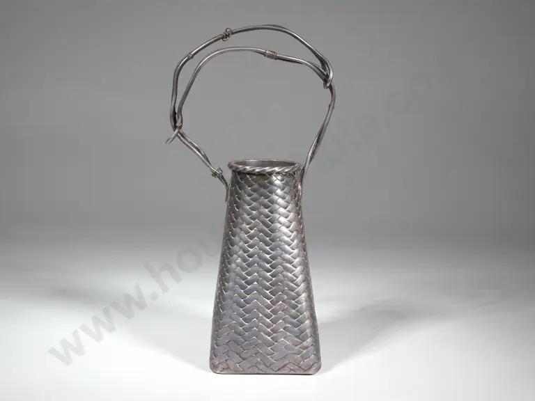Antique Japanese Sterling Silver Woven Basket with Handle. Japanese Marks Below - Sanki Sei (Made By Sanki) Estimate: $200 - $400