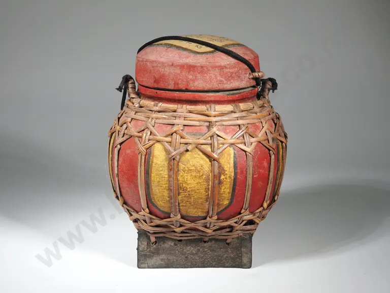 Round Vintage Thai Asian Rice Seed Basket Handpainted Estimate: $40 - $80