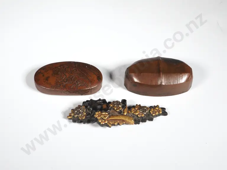 A Menukai For The Handle Of A Japanese Sword & Two Kojiri ( Fittings At the End Of A Scabbard)