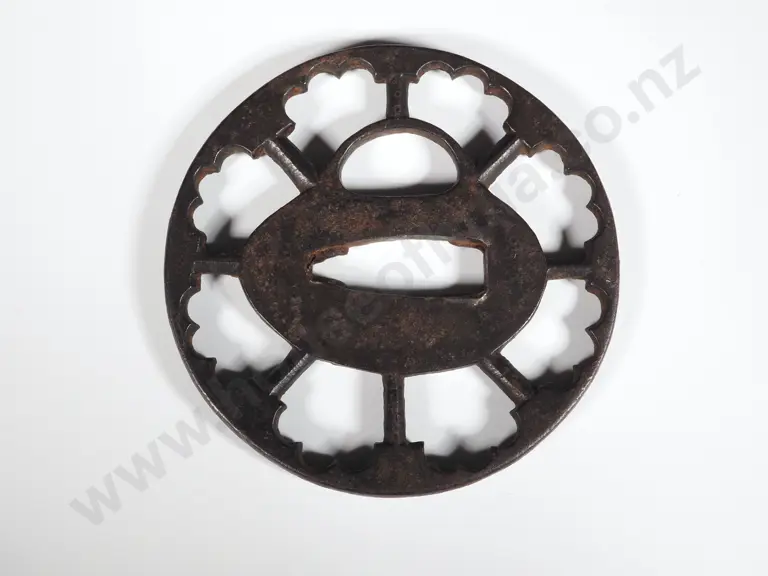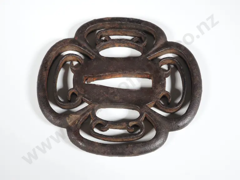 Japanese Owari Iron Tsuba w Symmetrical Design Typical of the Owari Area