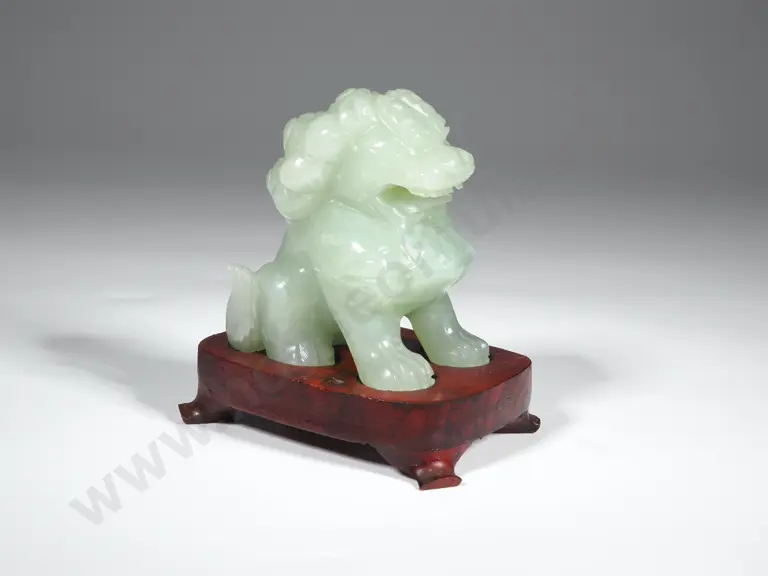 Jade Foo Dog on Wooden Stand Estimate: $40 - $80