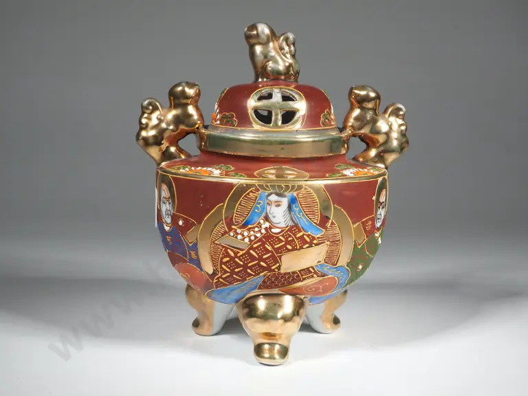 Vintage Moriage Satsuma Gilded Potpourri Jar with Imperial Heads