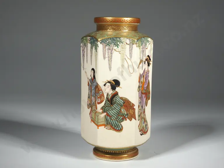 Fine Hexagonal Hand Painted Satsuma Vase Depicting Geisha Girls. Signed Underneath Estimate: $200 - $300
