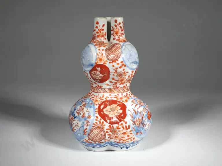 Imari Triple Gourd Vase. Meiji Period. Intricate Floral & Geometric Patterns
