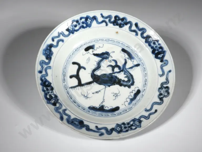 Chinese Blue & White Ming Period Swatow Ware Phoenix Plate