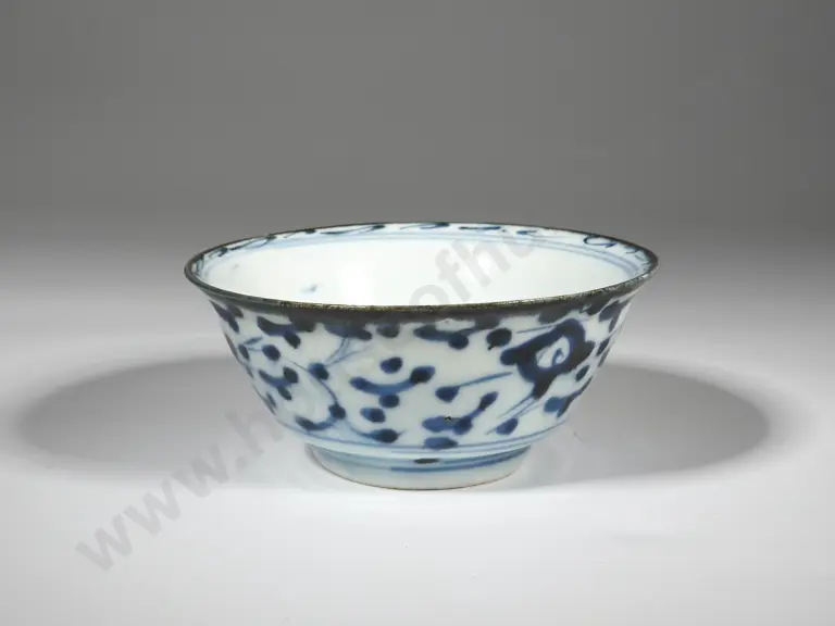 Chinese Blue & White Ming Period Swatow Ware Footed Bowl, Decorated With Florals Estimate: $150 - $300