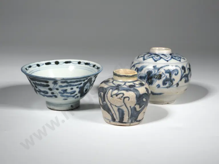 Three Pieces Of Chinese Ming Period Swatow Ware, Two Small Jars & A Bowl Estimate: $150 - $200
