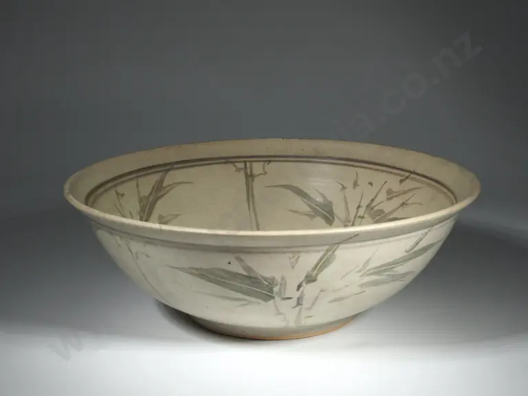Japanese Kutani Bowl, Late 19th Century, Iron Red With Three Separate Scenes. Estimate: $50 - $100
