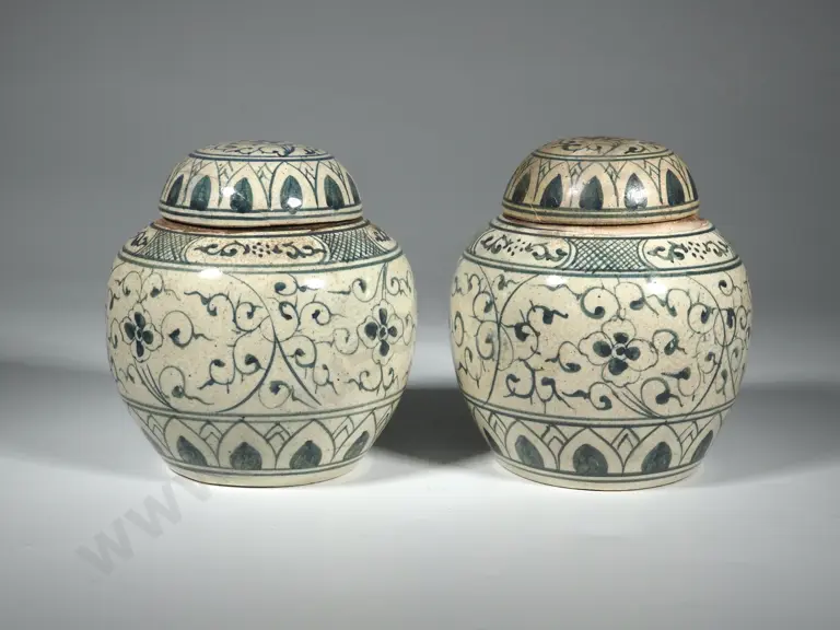 Pair Of 18ct Underglaze Blue & White Ginger Jars. Estimate: $100 - $200