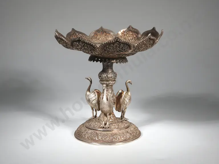 Antique Late 19th Century . India Kutch Silver Footed Figural Tazza/Compote. Hallmarked OM for Oomersi Mawji Estimate: $1,200 - $1,800