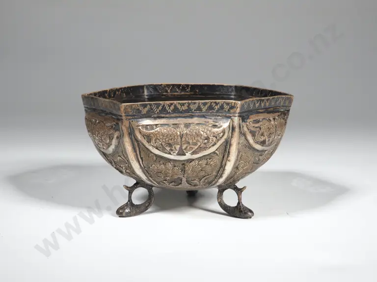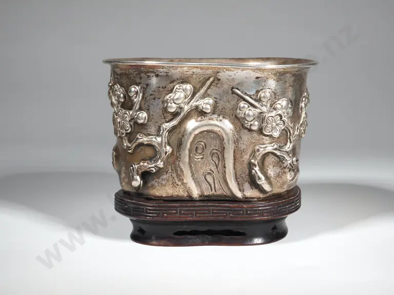 Chinese Export Silver Shaped Bowl Late Qing Dynasty. In The Form Of A Trunk & Decorated In High Relief With Prunus Estimate: $600 - $900