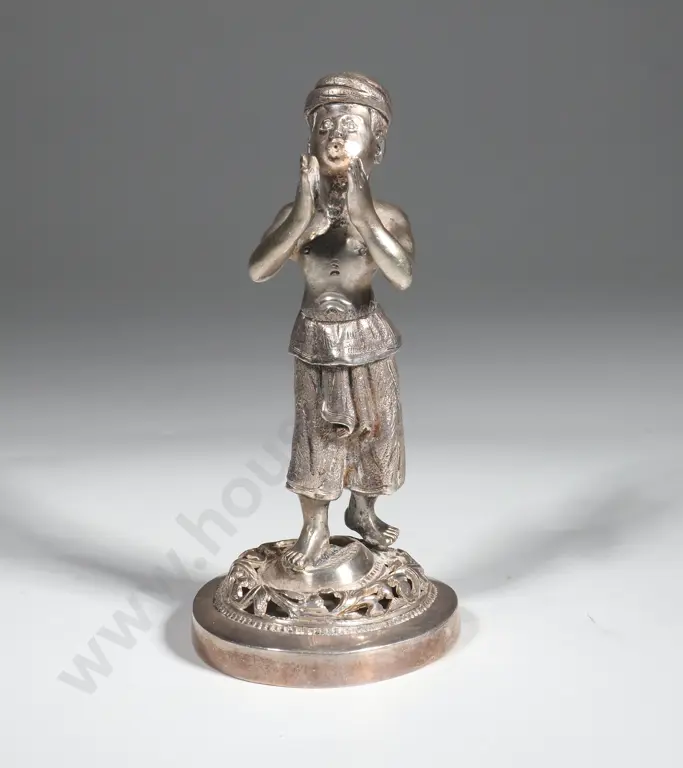 Antique Sterling Silver Burmese Menu Holder In The Form Of A Dancing Figure