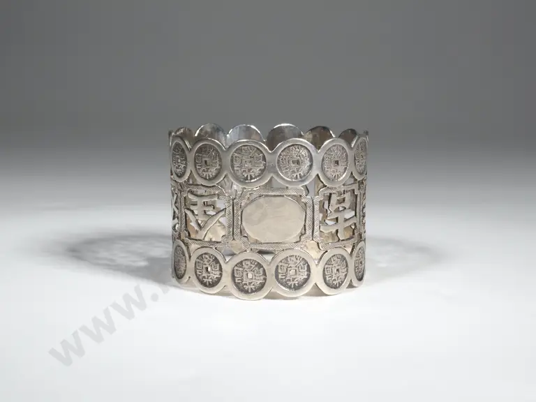 Decoratively Engraved Sterling Silver Asian Napkin Ring Circa 1900.