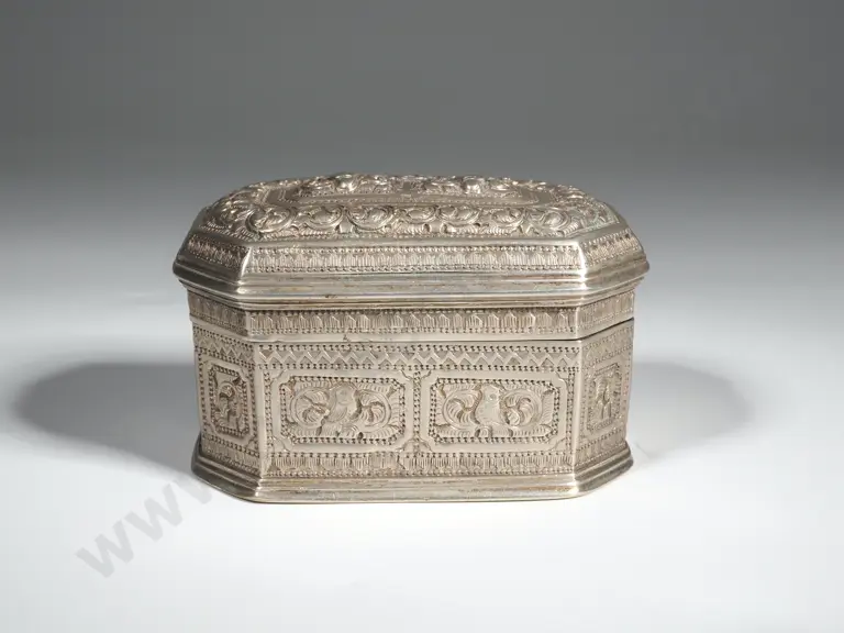 Octagonal Lidded Container With Allover Embossed Decoration with Signature to Base