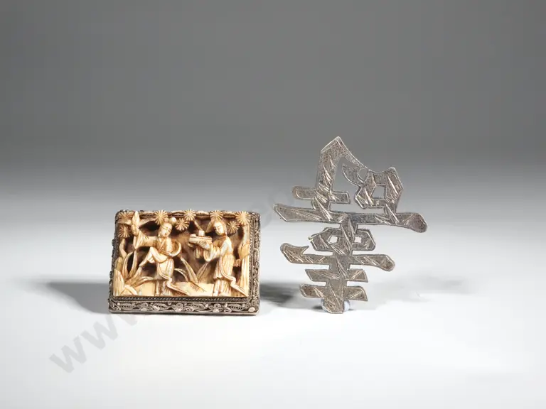 Filigree S/S & Ivory Brooch; S/S Calligraphy Brooch. Both need repairs.