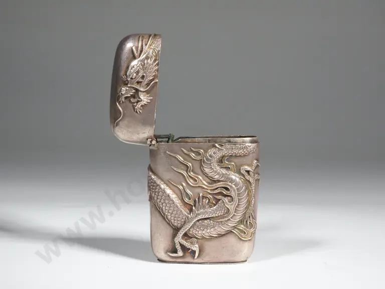 Chinese Sterling Silver Vesta Box With Highly Embossed Mythical Dragon. Estimate: $200 - $300