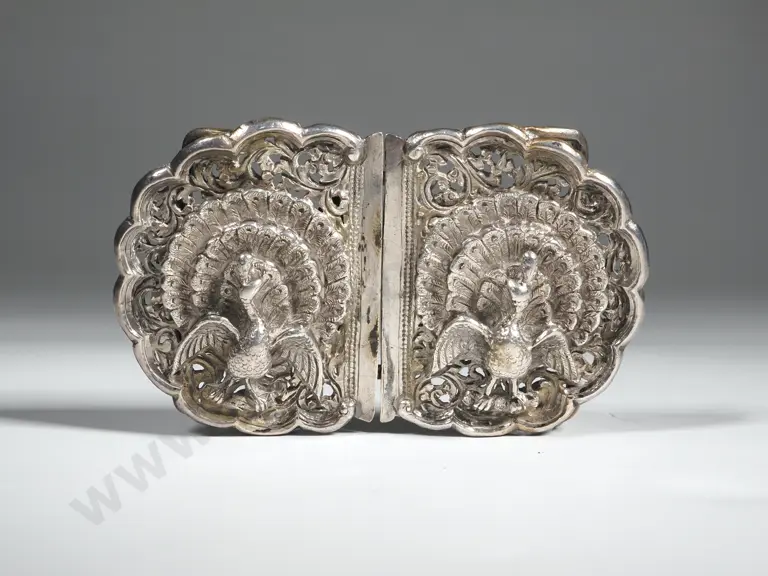 Antique Sterling Silver Belt Buckle With Heavily Embossed Peacocks Estimate: $100 - $200