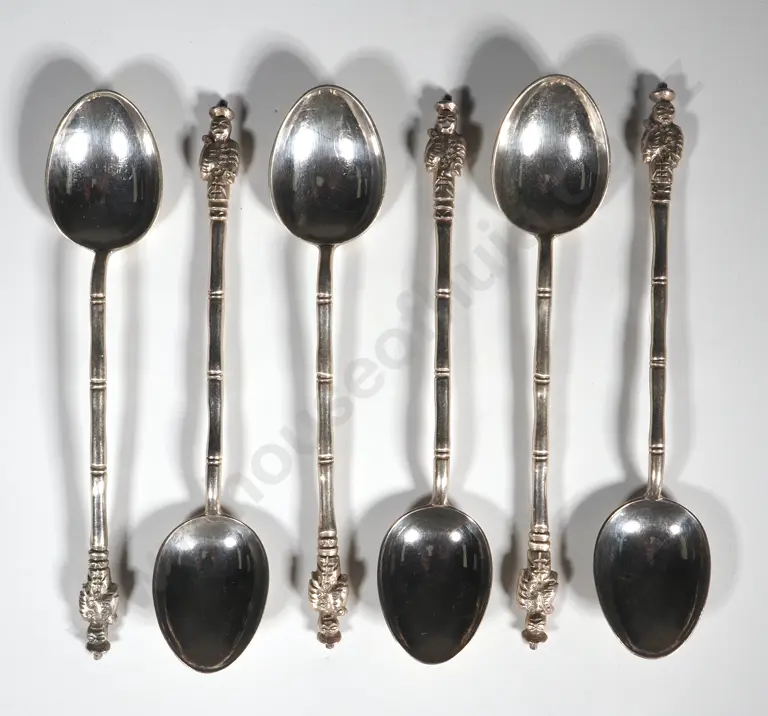 Set of Six Chinese Export.900 Silver Coffee Spoons Marked Wai Kee Hong Kong