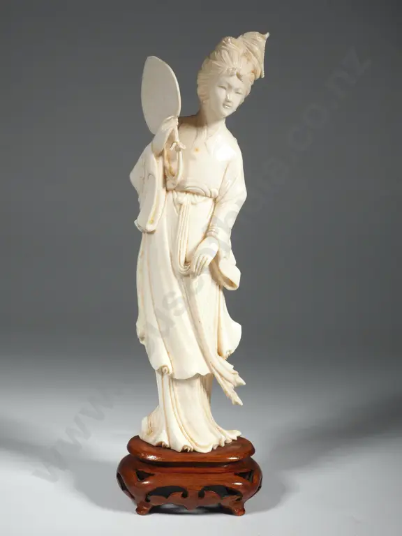 Carved Ivory Figure Of A Woman On Stand, (Repair To Hand)