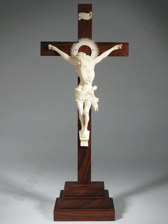 Crucifix Formed Of Carved Ivory Jesus On A Rosewood Cross with An Inri Plaque. Hgt 380mm