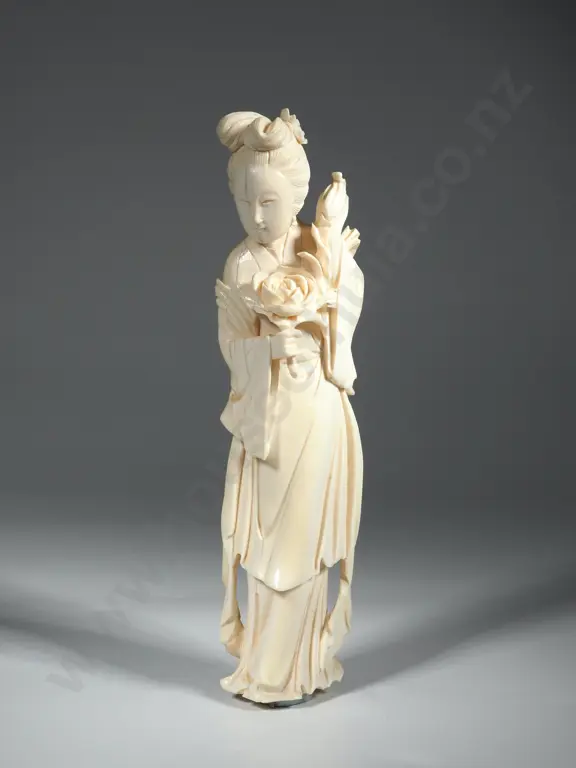 Ivory figure Of A Female, Possibly Guan Yin, A Bodhisattva Revered In Buddhism, Holding A Lotus Flower