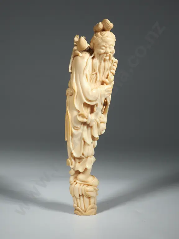 Antique Well Carved Ivory Figure Of An Old Man, Possibly An Immortal Or Sage