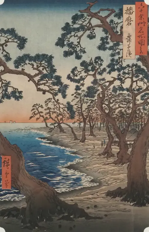 Utagawa Hiroshige Woodblock Print " Pine Trees At Maiko Beach, Harima Province" Estimate: $100 - $200