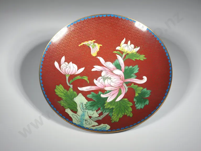 Vintage Cloisonne Plate w Butterflies & Peonies